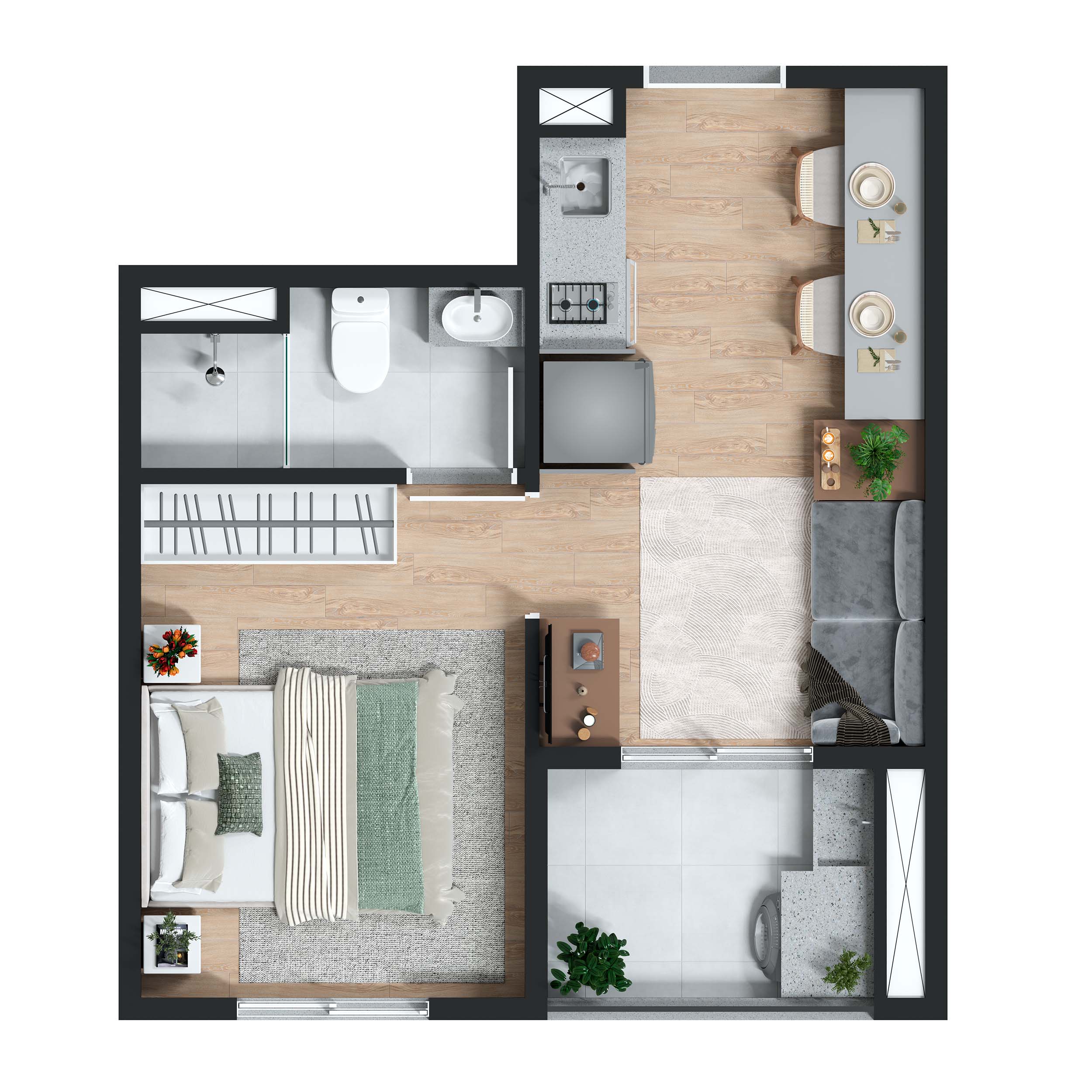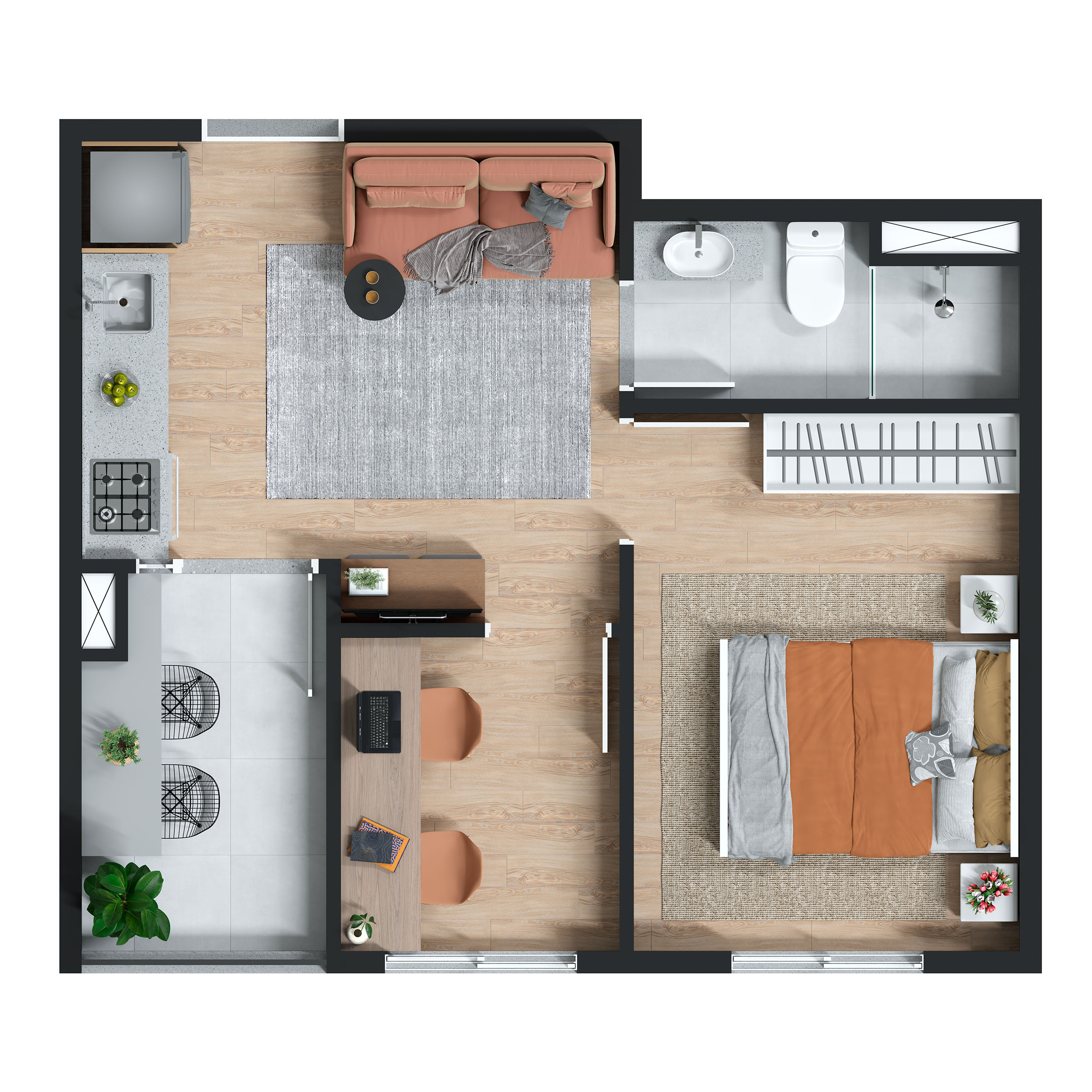 Maskan Patriarca Planta 1 Dorm + Office 31 m2