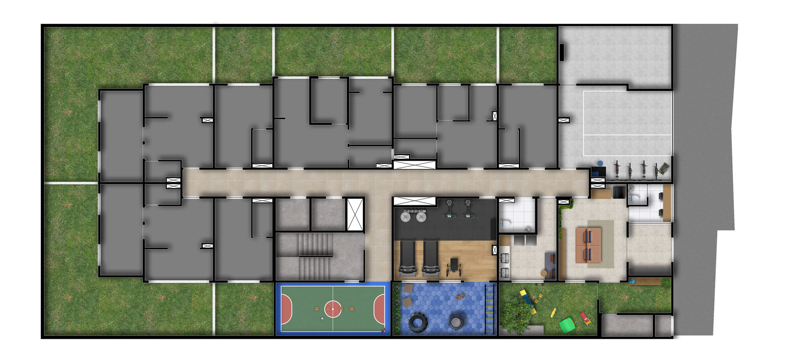 O condomínio possui mais de 10 opções de lazer, criando espaços ideais para relaxar, se exercitar e aproveitar momentos de convivência.