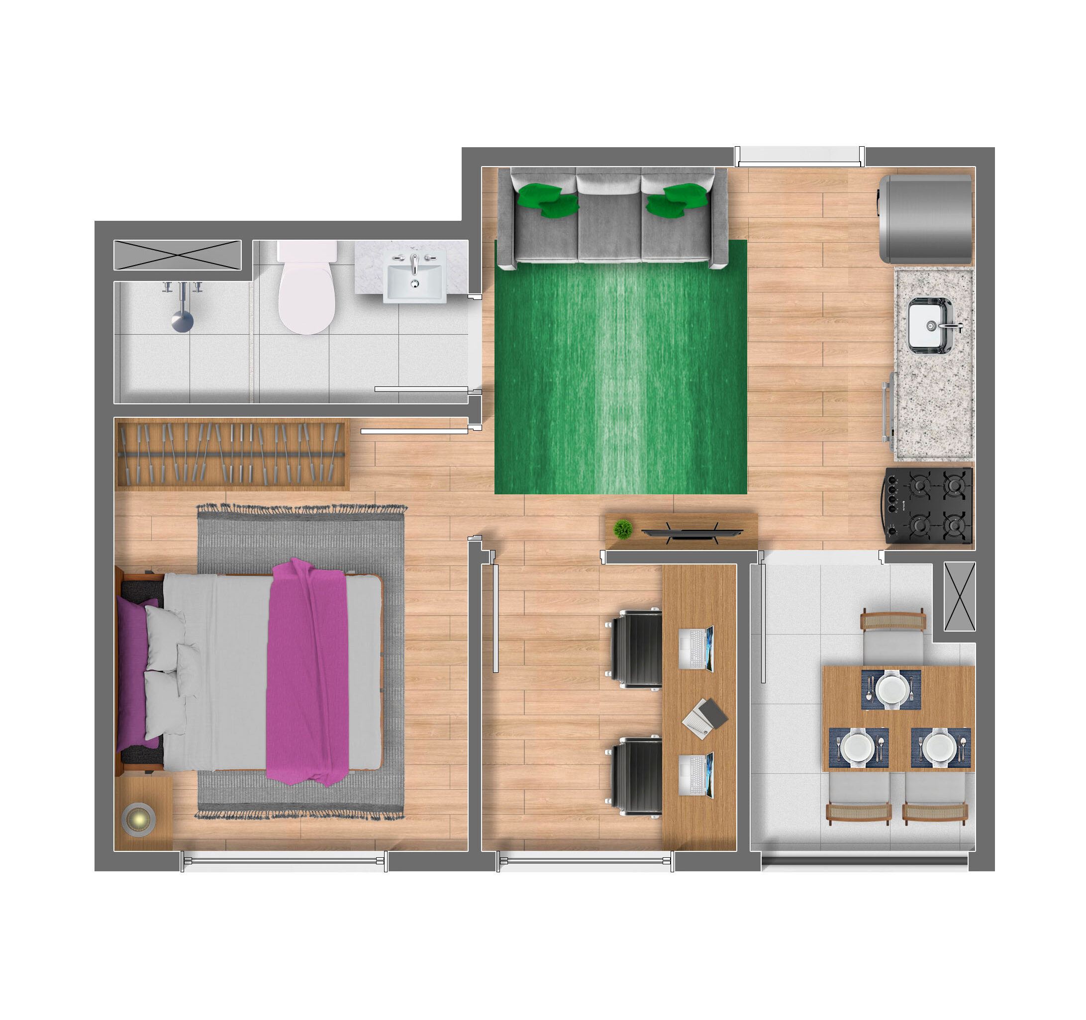 O empreendimento conta com studios e apartamentos de 1 e 2 dormitórios, com plantas modernas projetadas para oferecer conforto, funcionalidade e integração dos ambientes.
