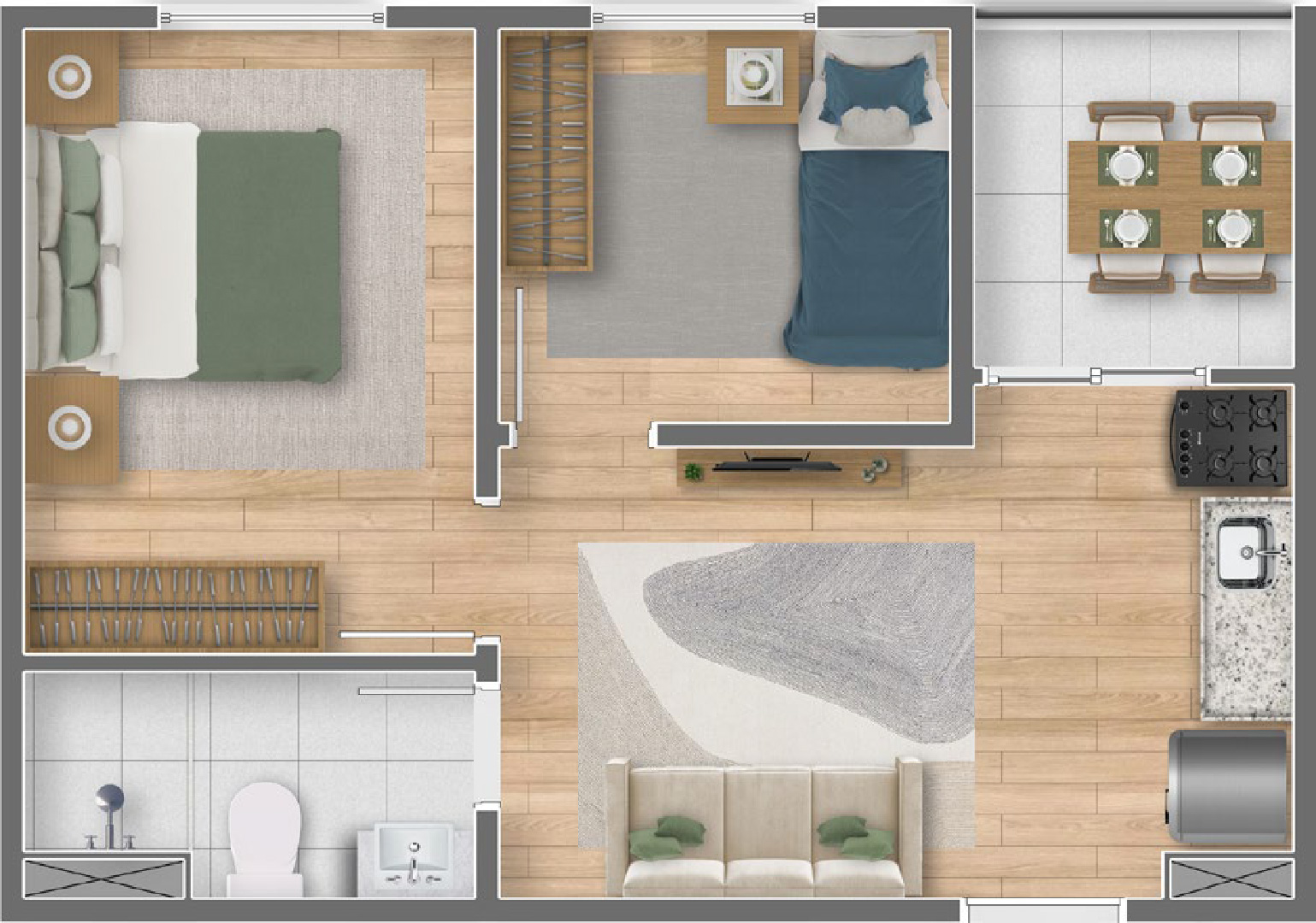 O empreendimento conta com plantas inteligentes de studios, 1 dormitório com office e 2 dormitórios, pensadas para oferecer conforto, praticidade e funcionalidade para diferentes estilos de vida.