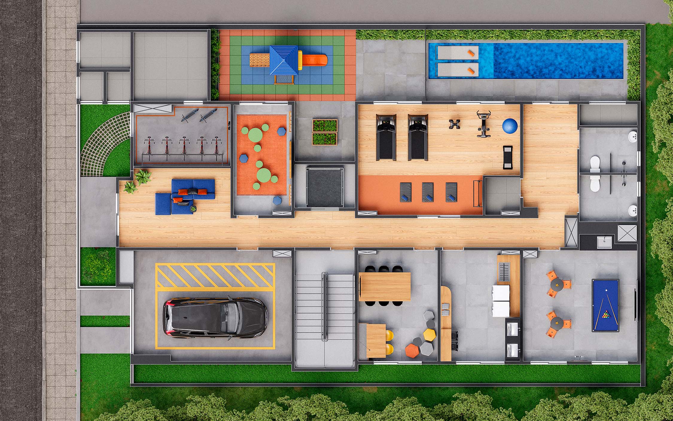 O condomínio oferece infraestrutura completa de lazer e convivência, proporcionando espaços ideais para relaxar, se exercitar e aproveitar momentos com a família e amigos.