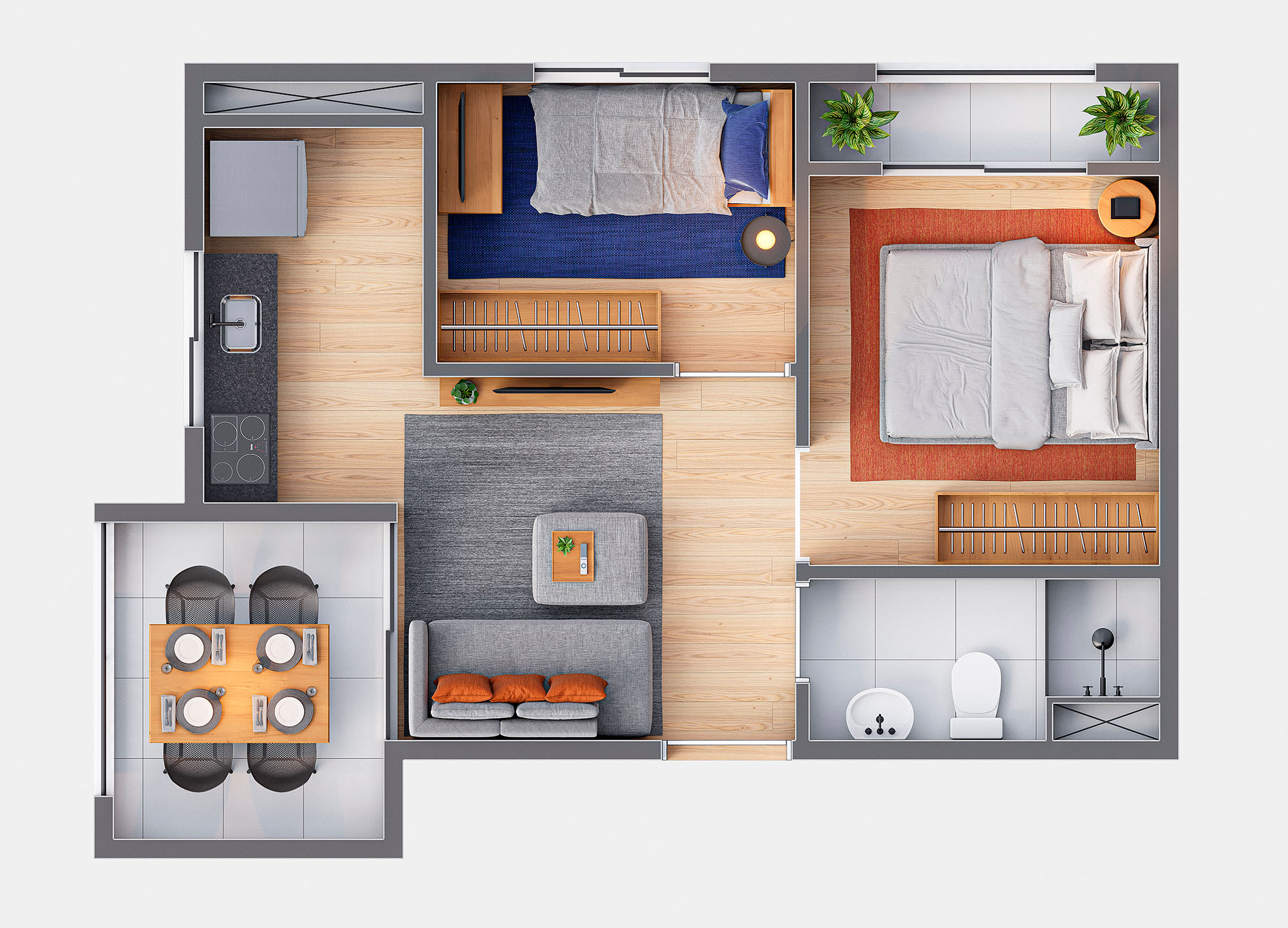 O empreendimento conta com studios e apartamentos de 1 e 2 dormitórios, com plantas inteligentes que valorizam o conforto, a funcionalidade e a integração dos ambientes.