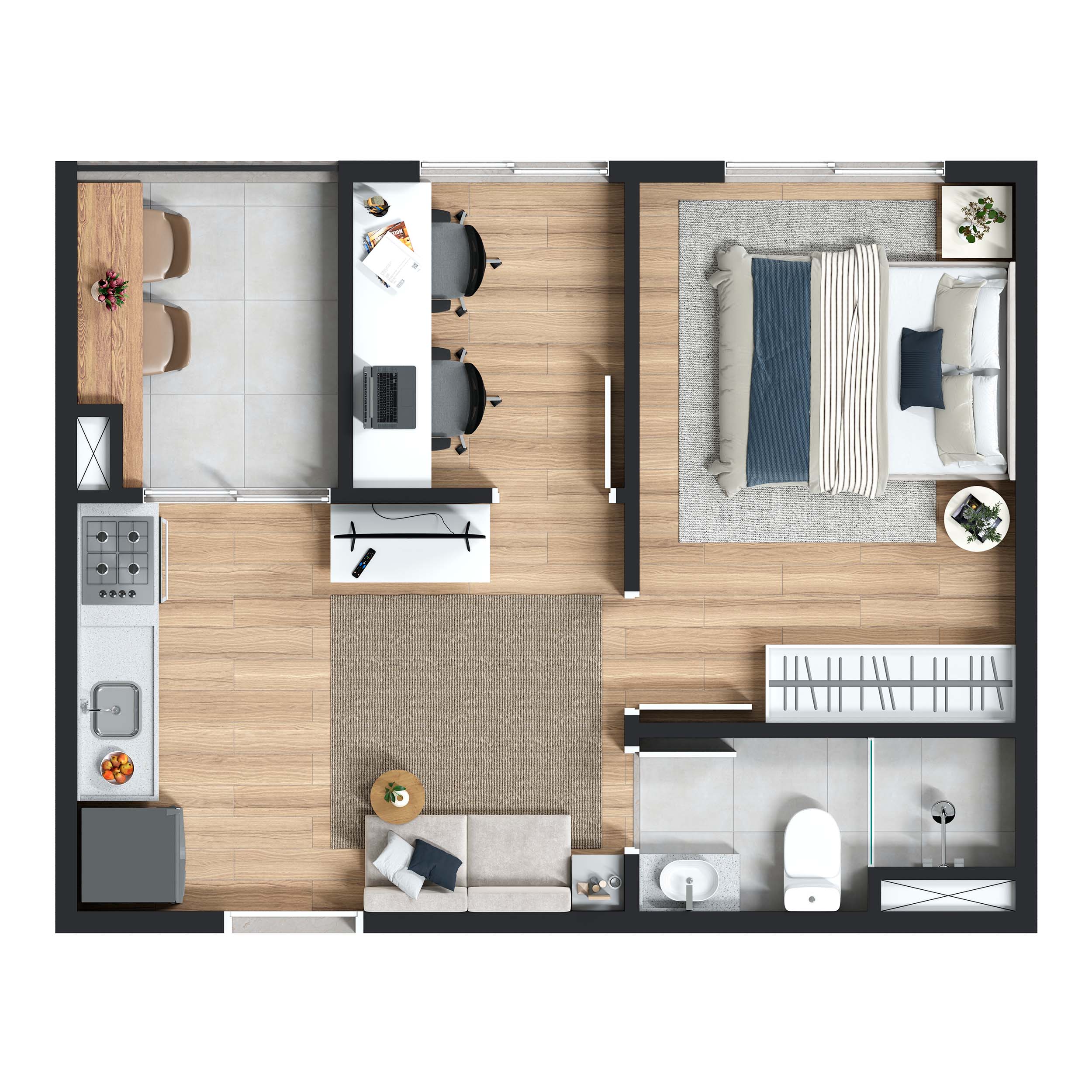 Maskan Estação Ipiranga Planta 1 Dorm + Office 28 m2