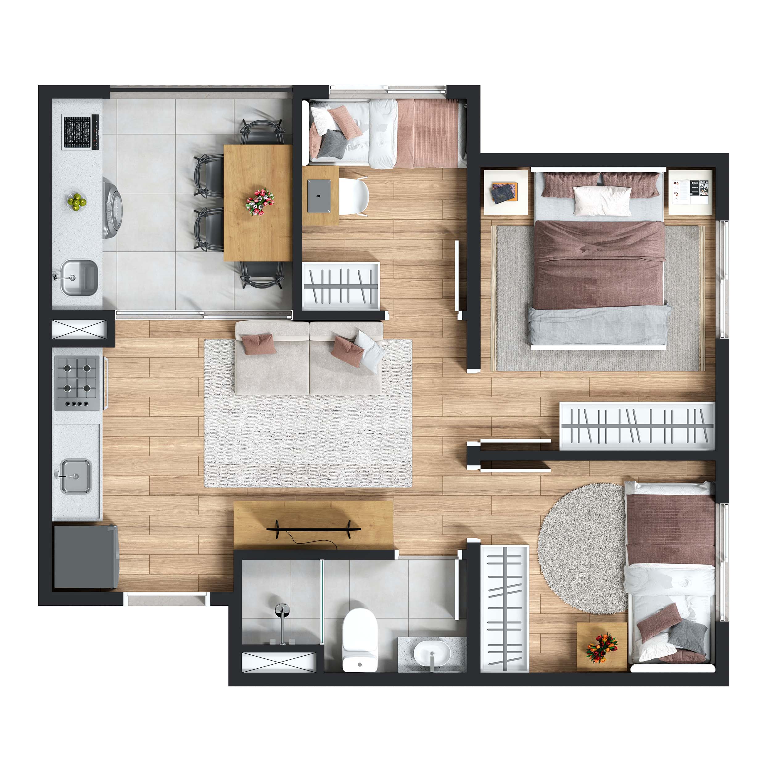 Maskan Estação Jabaquara Planta 3 Dorms 39 m2